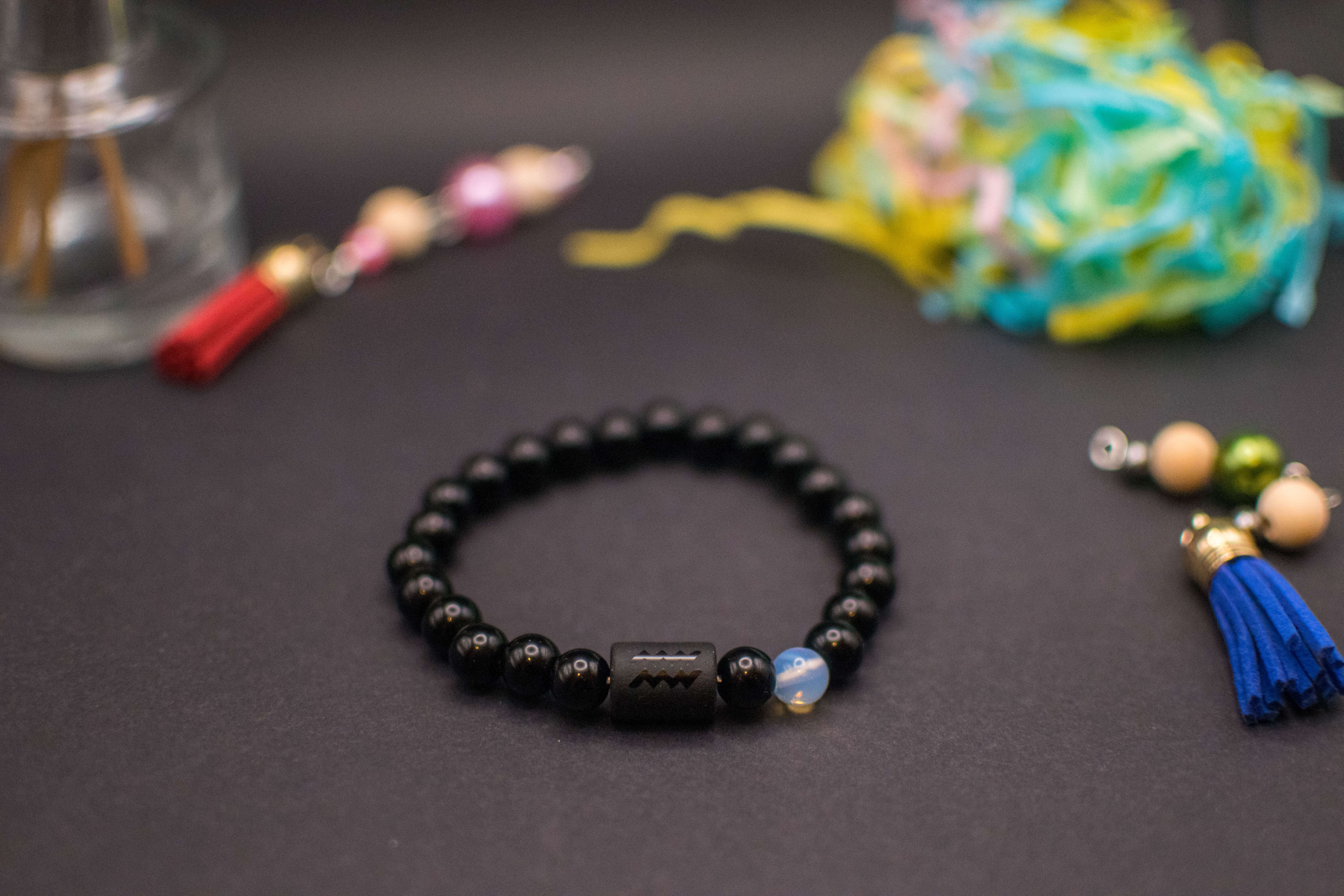 Aquarius , Black Onyx & Tiger Eye Bracelet With Air Element Stone